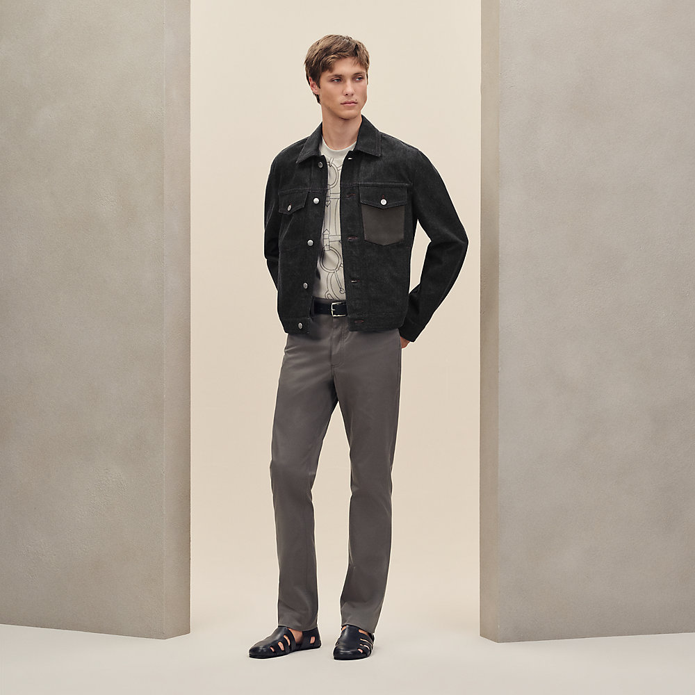 Straight cut jacket with leather detail