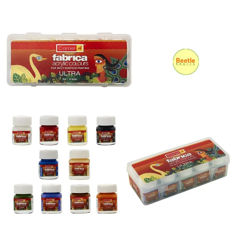 Camlin Fabrica Acrylic Ultra Color – 10 Shades, 15ml each | Multi-Surface Paint