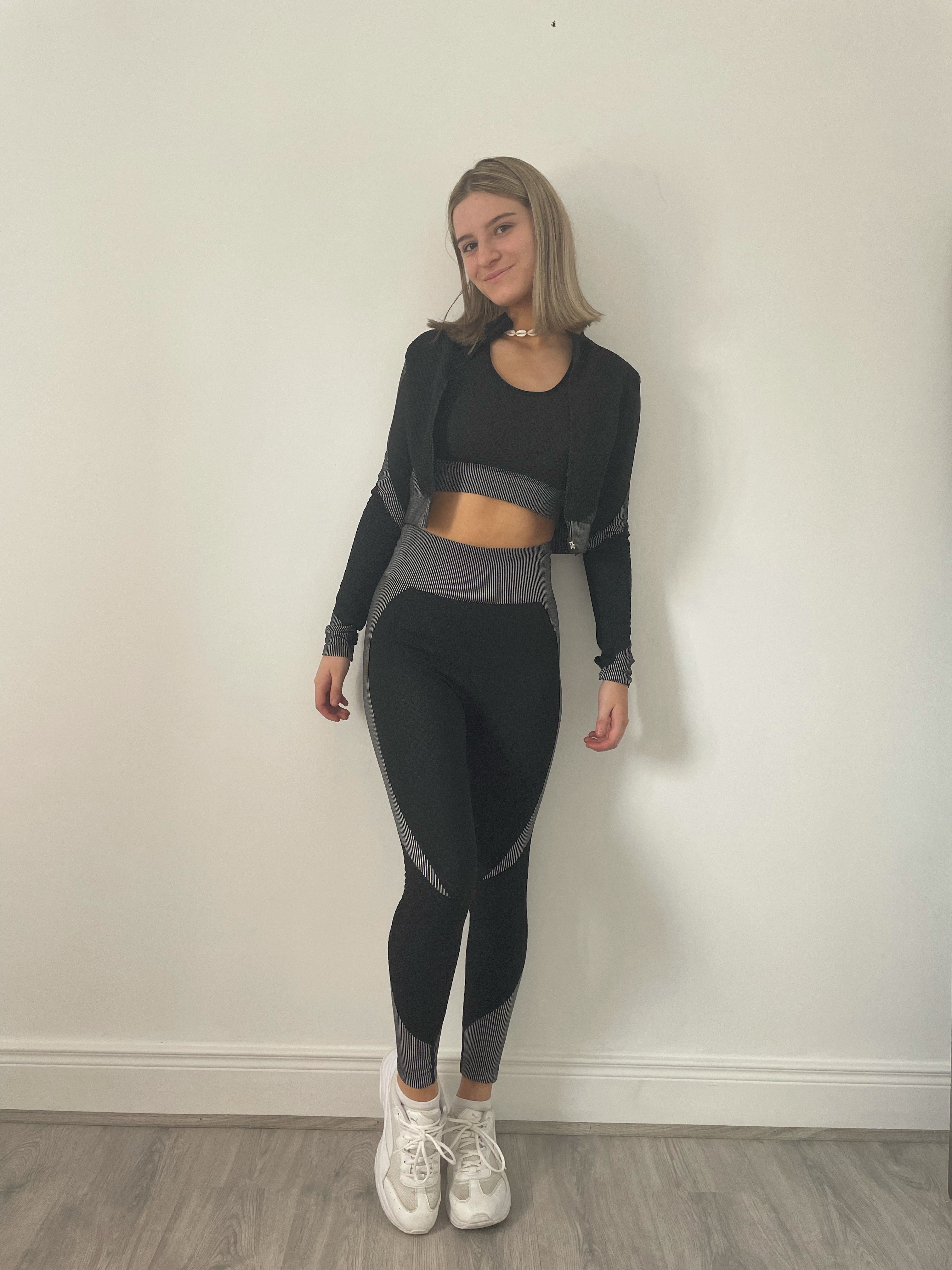 Oversized Fleeced Crop Top & Jogger Co-Ord – Black