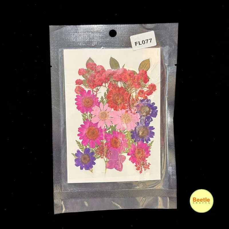 Pressed Flowers Mix (25-in-1) – Red, Magenta, Pink & Violet Tones | Natural Dried Flowers for Resin Art, Jewellery & Crafts